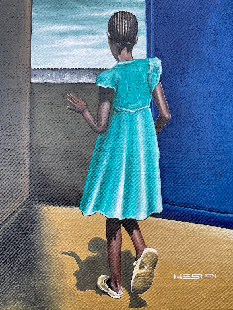 This piece was created at the Uweza Art Gallery by a youth artist living in the Kibera slum of Nairobi Kenya. 60% of the proceeds of this sale will go to the artist and 40% will go toward the operations of our art gallery, which provides opportunities for creative expression and development of artistic talent for children and youth living in Kibera.