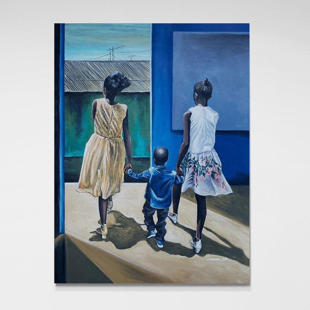 Shipped from Nairobi, Kenya via DHL as rolled canvas in a shipping tube or delivered within Nairobi stretched on frame.