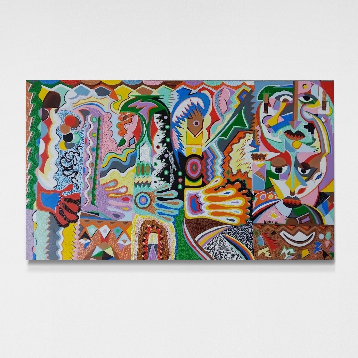 This piece was created at the Uweza Art Gallery by a youth artist living in the Kibera slum of Nairobi Kenya. 60% of the proceeds of this sale will go to the artist and 40% will go toward the operations of our art gallery, which provides opportunities for creative expression and development of artistic talent for children and youth living in Kibera.
