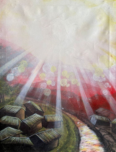 This piece was created at the Uweza Art Gallery by a youth artist living in the Kibera slum of Nairobi Kenya. 60% of the proceeds of this sale will go to the artist and 40% will go toward the operations of our art gallery, which provides opportunities for creative expression and development of artistic talent for children and youth living in Kibera.