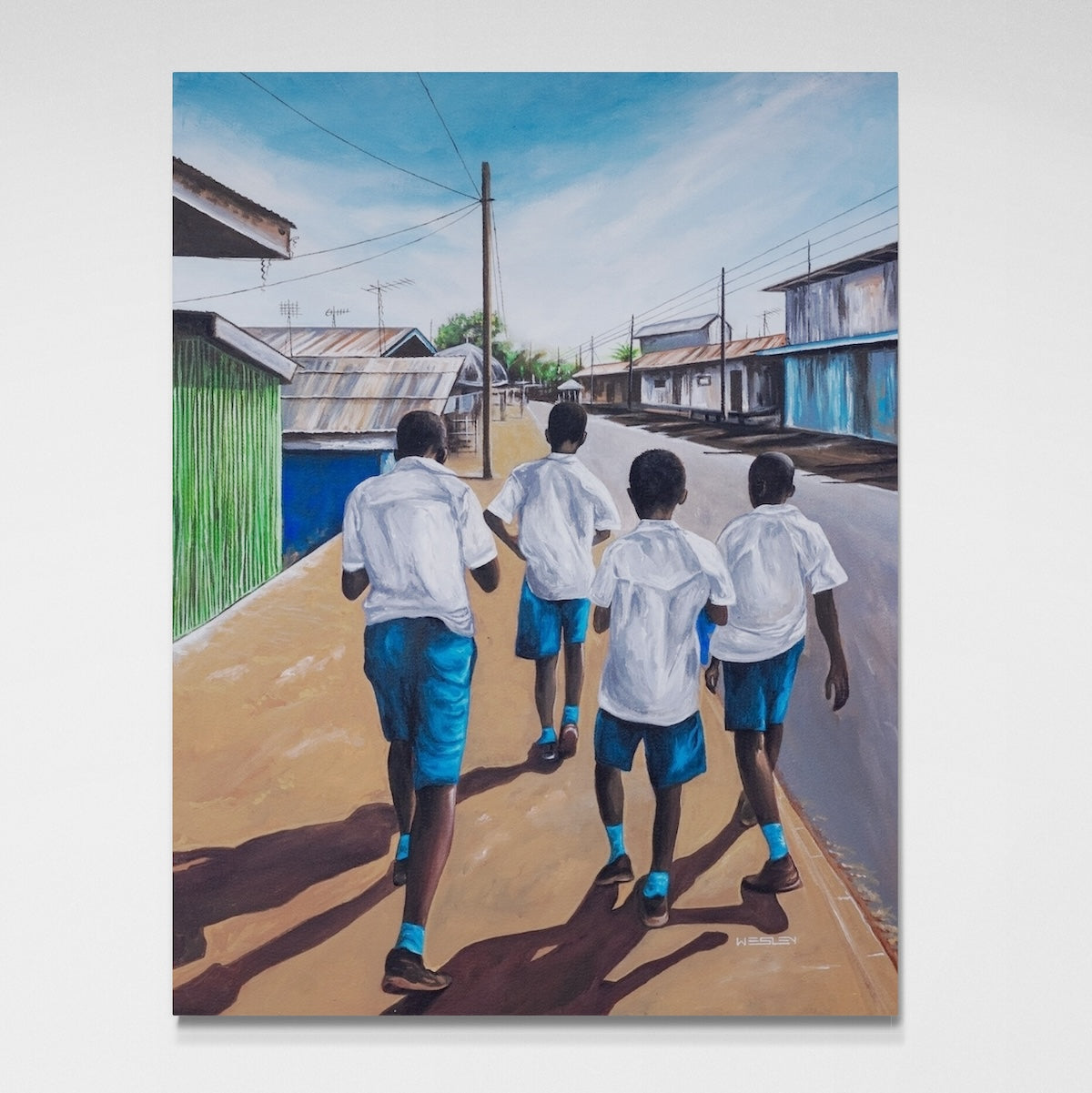 Shipped from Nairobi, Kenya via DHL as rolled canvas in a shipping tube or delivered within Nairobi stretched on frame.