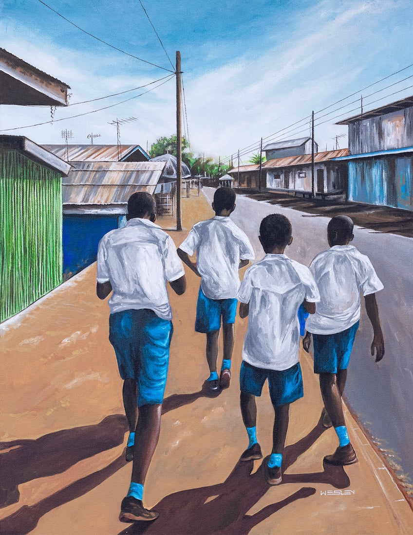 This piece was created at the Uweza Art Gallery by a youth artist living in the Kibera slum of Nairobi Kenya. 60% of the proceeds of this sale will go to the artist and 40% will go toward the operations of our art gallery, which provides opportunities for creative expression and development of artistic talent for children and youth living in Kibera.