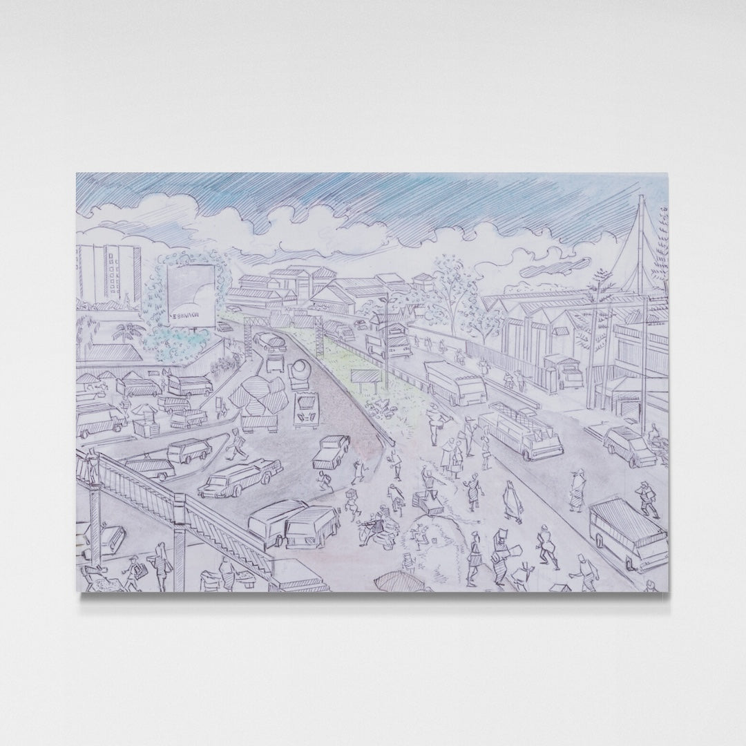 This piece was created at the Uweza Art Gallery by a youth artist living in the Kibera slum of Nairobi Kenya. 60% of the proceeds of this sale will go to the artist and 40% will go toward the operations of our art gallery, which provides opportunities for creative expression and development of artistic talent for children and youth living in Kibera.