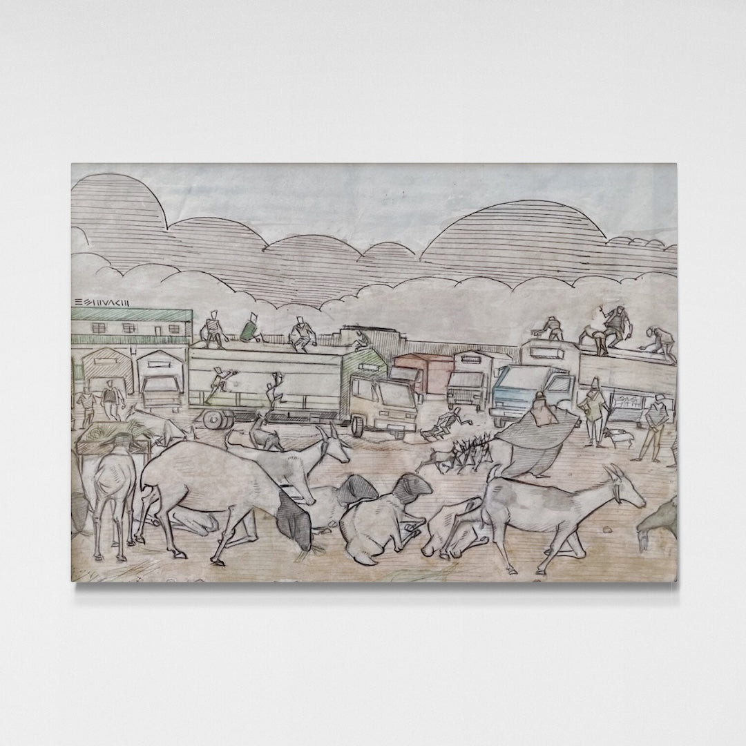 This piece was created at the Uweza Art Gallery by a youth artist living in the Kibera slum of Nairobi Kenya. 60% of the proceeds of this sale will go to the artist and 40% will go toward the operations of our art gallery, which provides opportunities for creative expression and development of artistic talent for children and youth living in Kibera.