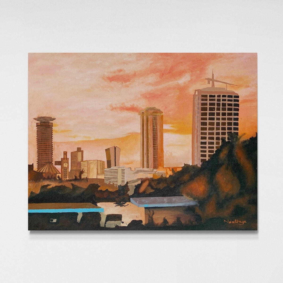 Shipped from Nairobi, Kenya via DHL as rolled canvas in a shipping tube or delivered within Nairobi stretched on frame.