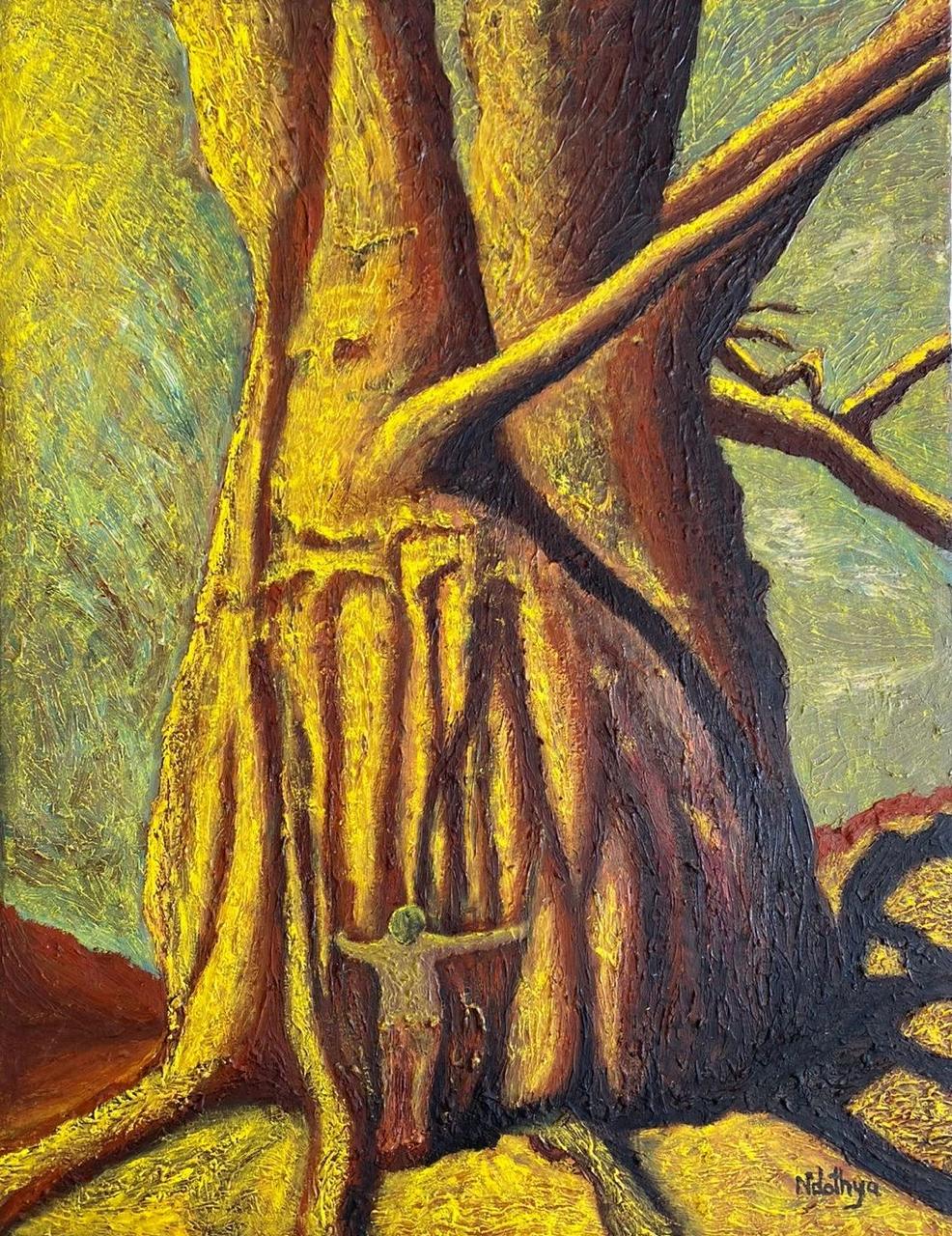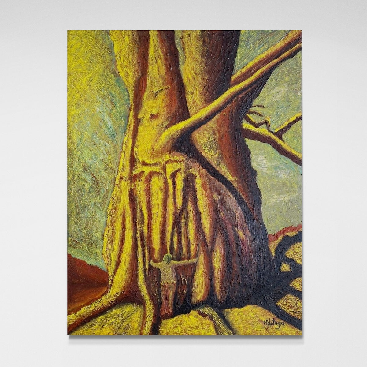 This piece was created at the Uweza Art Gallery by a youth artist living in the Kibera slum of Nairobi Kenya. 60% of the proceeds of this sale will go to the artist and 40% will go toward the operations of our art gallery, which provides opportunities for creative expression and development of artistic talent for children and youth living in Kibera.