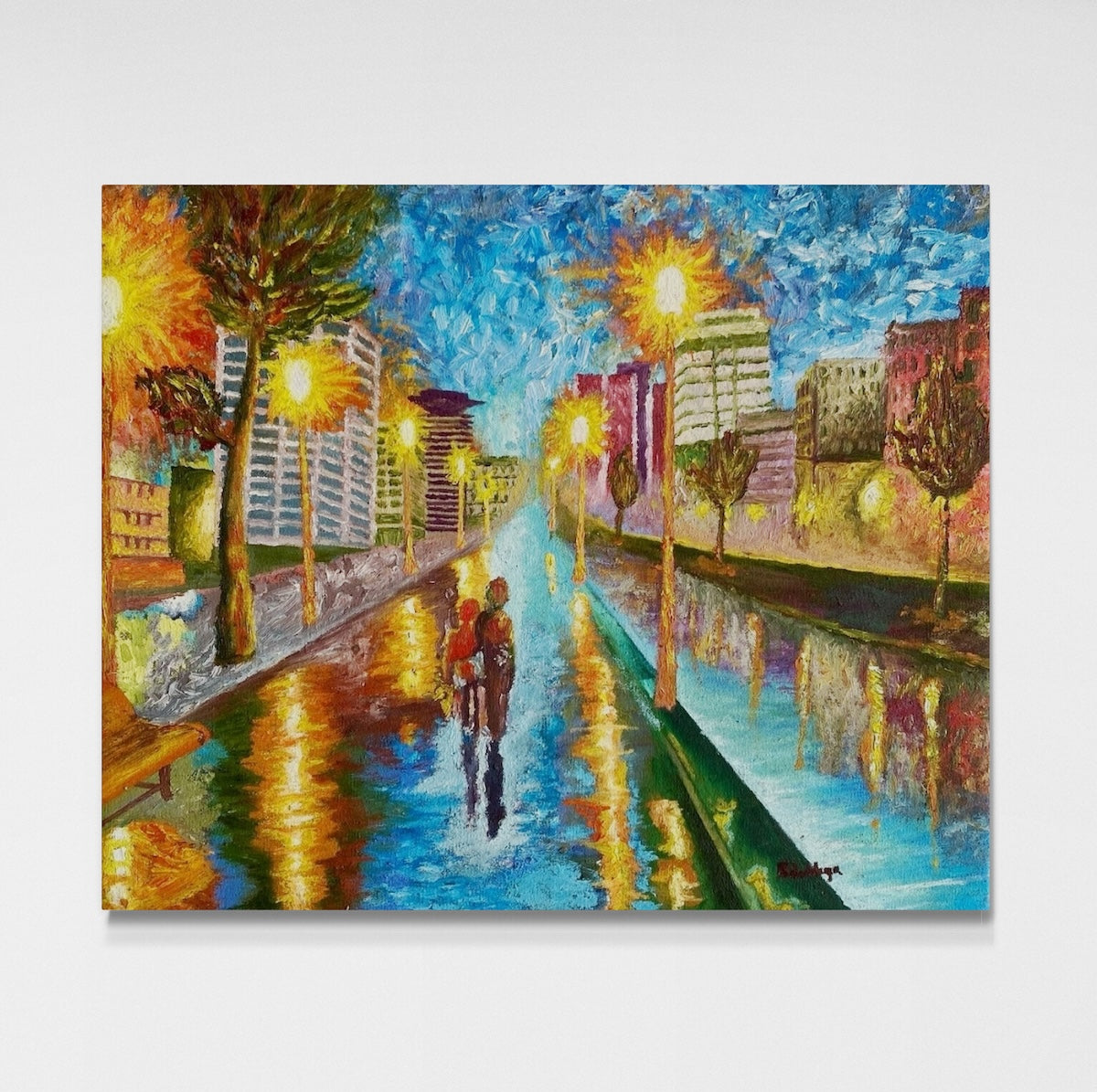 Shipped from Nairobi, Kenya via DHL as rolled canvas in a shipping tube or delivered within Nairobi stretched on frame.