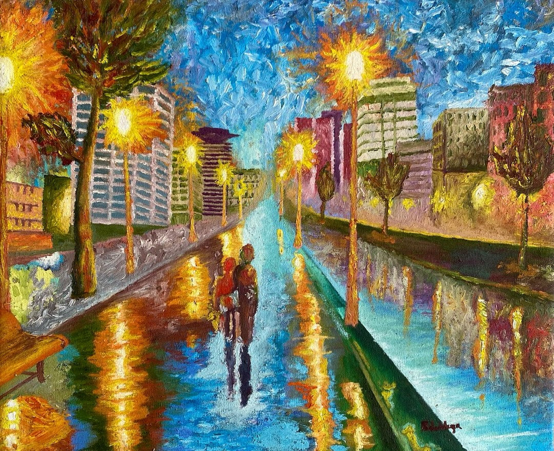 This piece was created at the Uweza Art Gallery by a youth artist living in the Kibera slum of Nairobi Kenya. 60% of the proceeds of this sale will go to the artist and 40% will go toward the operations of our art gallery, which provides opportunities for creative expression and development of artistic talent for children and youth living in Kibera.