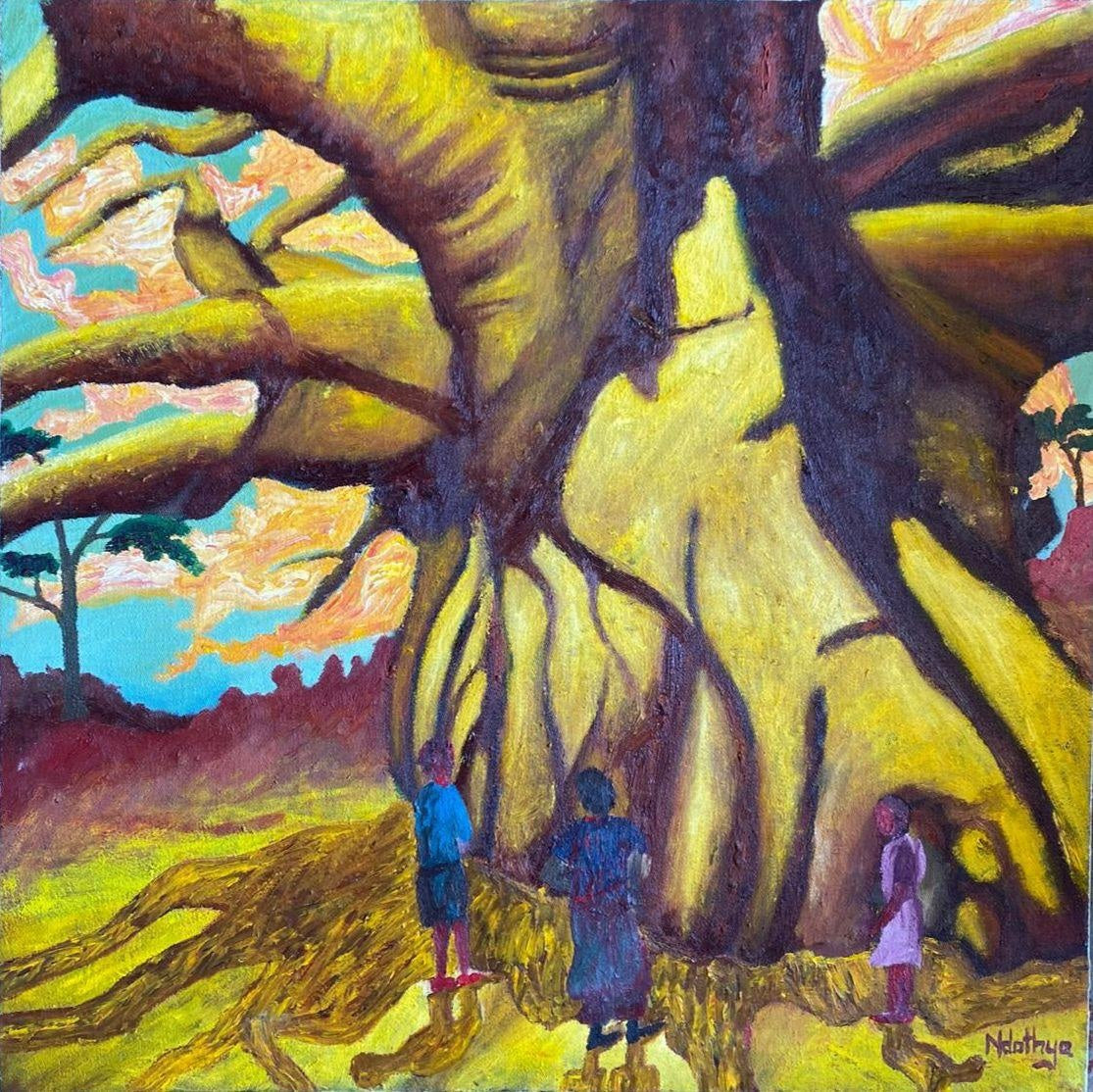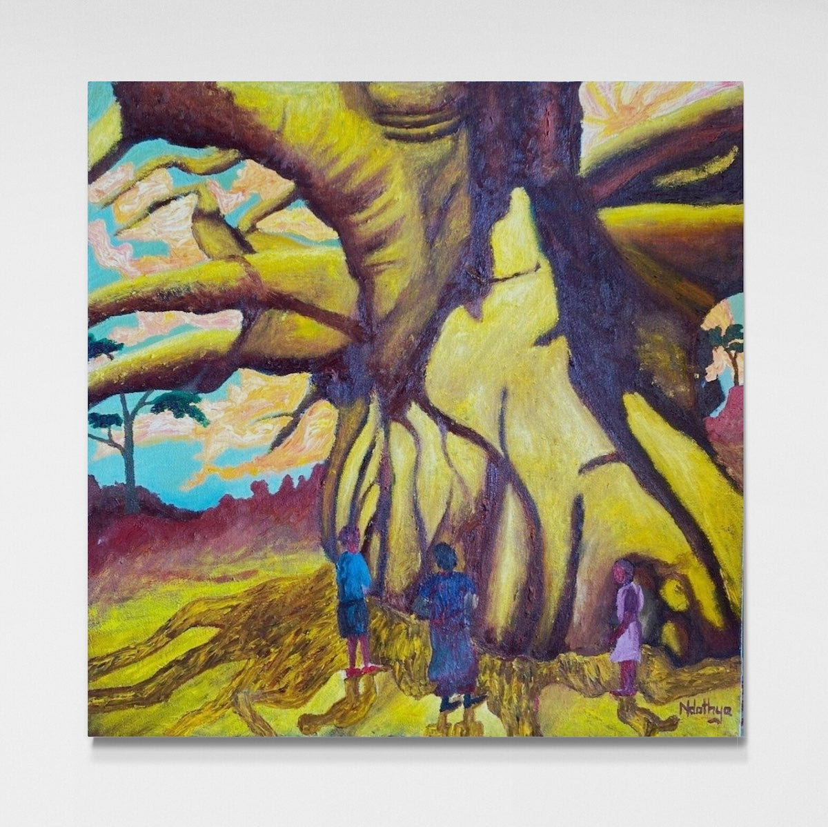 This piece was created at the Uweza Art Gallery by a youth artist living in the Kibera slum of Nairobi Kenya. 60% of the proceeds of this sale will go to the artist and 40% will go toward the operations of our art gallery, which provides opportunities for creative expression and development of artistic talent for children and youth living in Kibera.