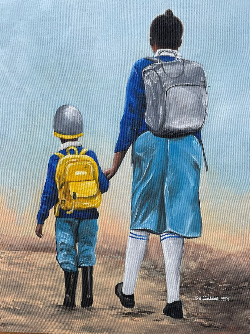 This piece was created at the Uweza Art Gallery by a youth artist living in the Kibera slum of Nairobi Kenya. 60% of the proceeds of this sale will go to the artist and 40% will go toward the operations of our art gallery, which provides opportunities for creative expression and development of artistic talent for children and youth living in Kibera.