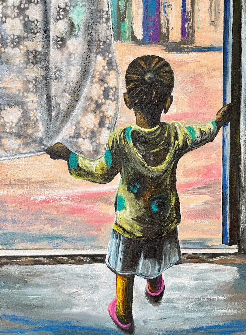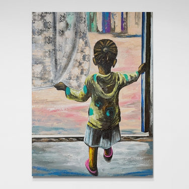 This piece was created at the Uweza Art Gallery by a youth artist living in the Kibera slum of Nairobi Kenya. 60% of the proceeds of this sale will go to the artist and 40% will go toward the operations of our art gallery, which provides opportunities for creative expression and development of artistic talent for children and youth living in Kibera.