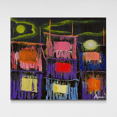 This piece was created at the Uweza Art Gallery by a youth artist living in the Kibera slum of Nairobi Kenya. 60% of the proceeds of this sale will go to the artist and 40% will go toward the operations of our art gallery, which provides opportunities for creative expression and development of artistic talent for children and youth living in Kibera.