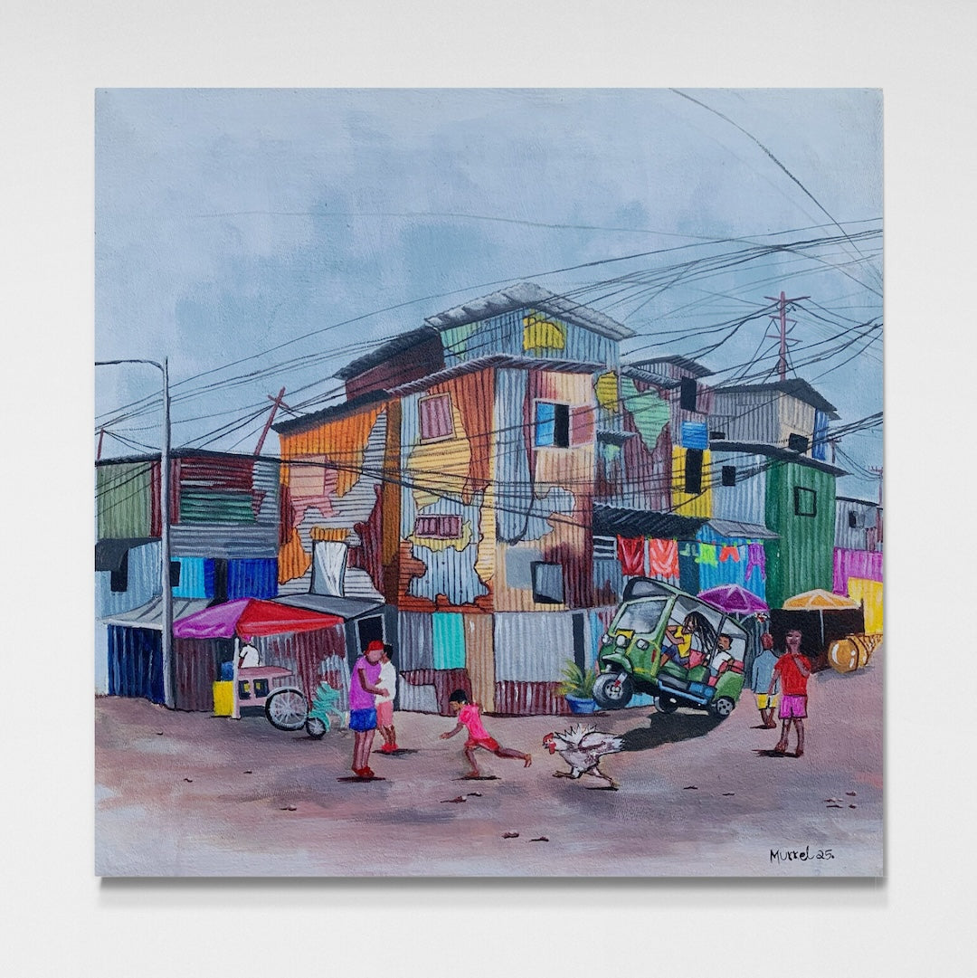 This piece was created at the Uweza Art Gallery by a youth artist living in the Kibera slum of Nairobi Kenya. 60% of the proceeds of this sale will go to the artist and 40% will go toward the operations of our art gallery, which provides opportunities for creative expression and development of artistic talent for children and youth living in Kibera.