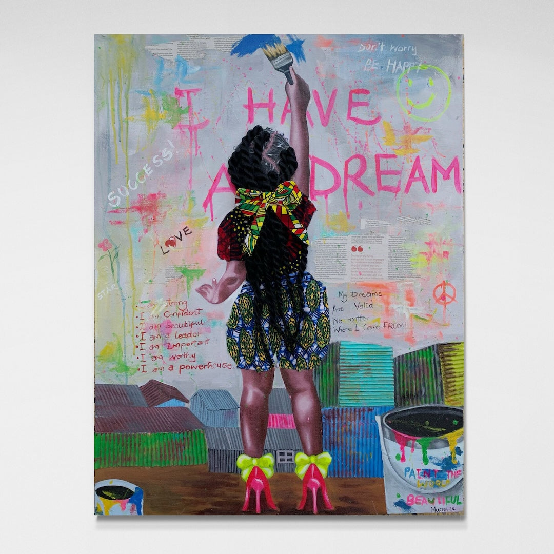 This piece was created at the Uweza Art Gallery by a youth artist living in the Kibera slum of Nairobi Kenya. 60% of the proceeds of this sale will go to the artist and 40% will go toward the operations of our art gallery, which provides opportunities for creative expression and development of artistic talent for children and youth living in Kibera.
