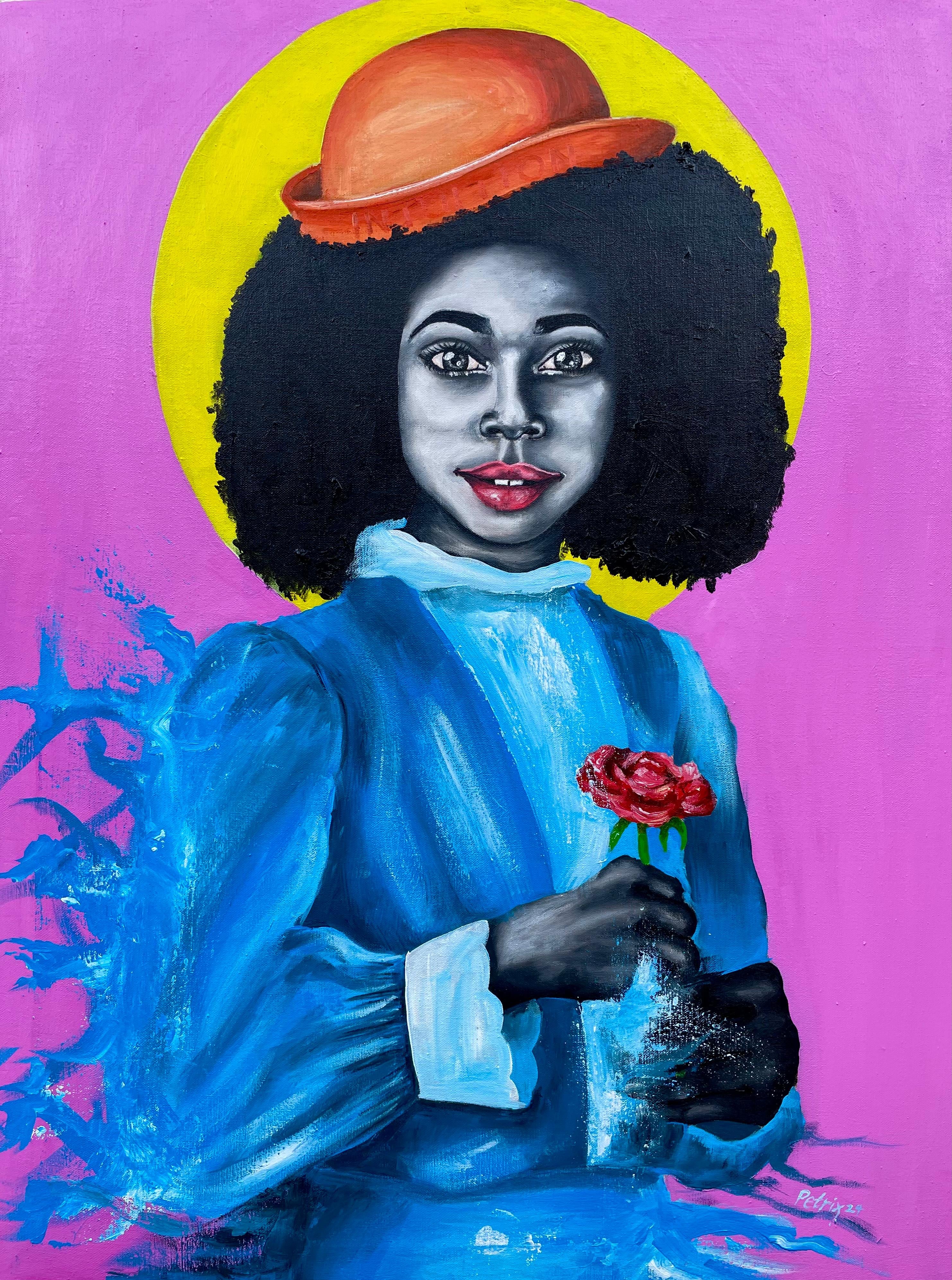 This piece was created at the Uweza Art Gallery by a youth artist living in the Kibera slum of Nairobi Kenya. 60% of the proceeds of this sale will go to the artist and 40% will go toward the operations of our art gallery, which provides opportunities for creative expression and development of artistic talent for children and youth living in Kibera.